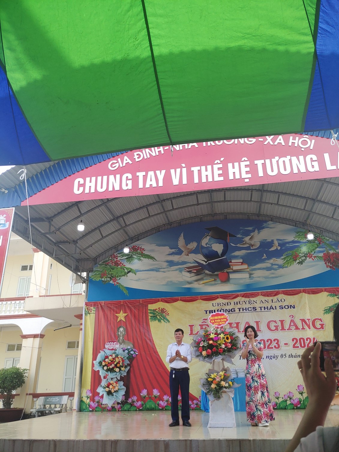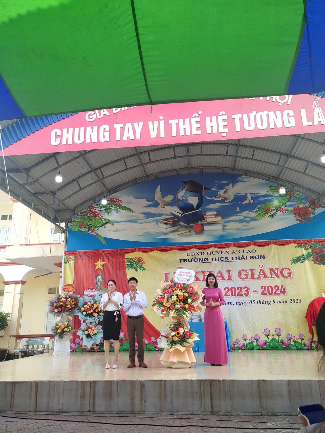 Trường vui mừng đón nhận sự quan tâm của huyện ủy, HĐND, Ủy ban nhân dân huyện An Lão. Đảng ủy, HĐND, Ủy ban nhân dân xã Thái Sơn, các ban ngành đoàn thể, các tập thể cá nhân, ban cha mẹ học sinh, chi hội trưởng phụ huynh các lớp đã dành tình cảm nồng ấm và những lãng hoa tươi thắm tới tập thể thầy và trò nhà trường nhân dịp khai giảng năm học mới.