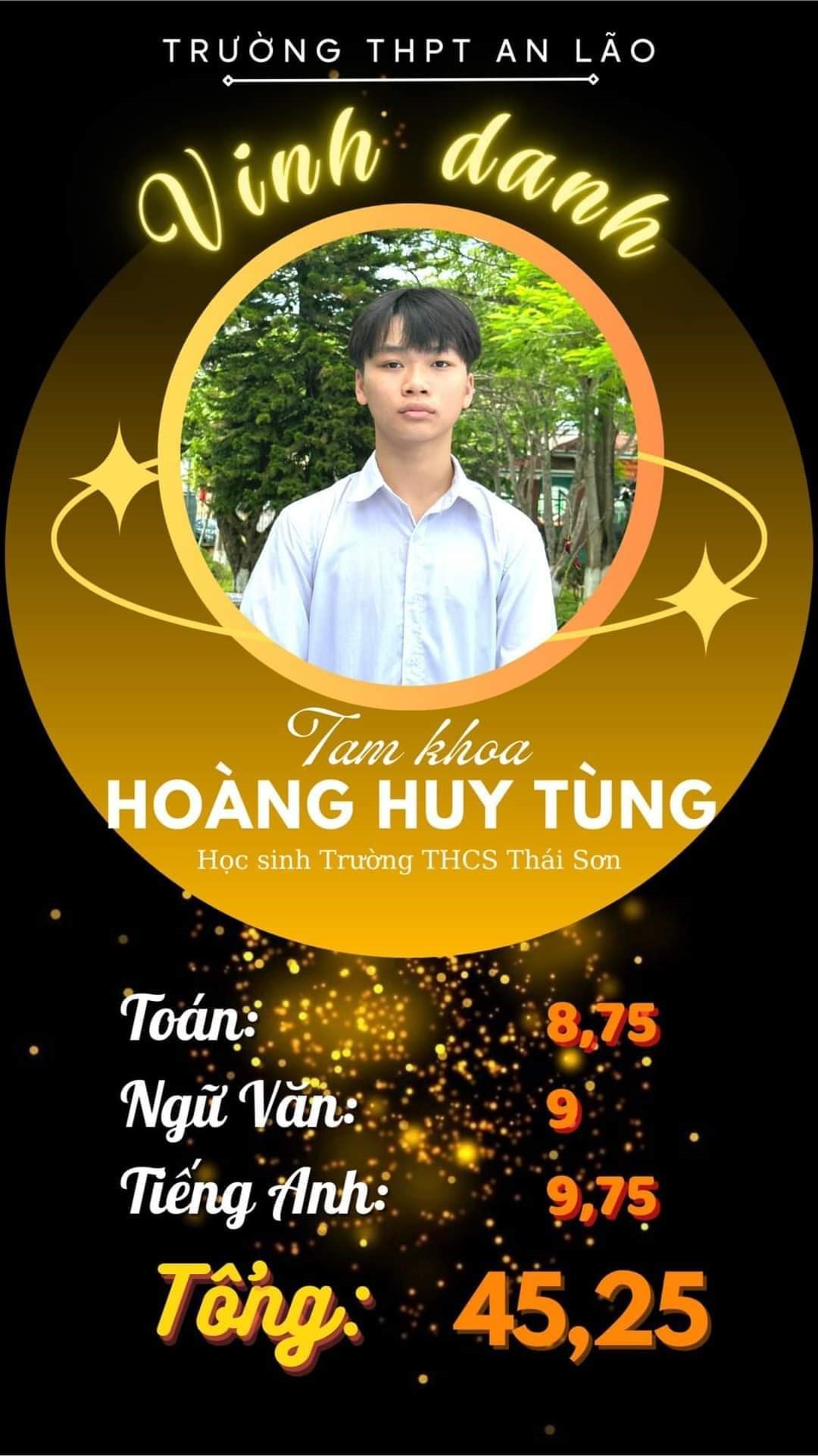 🎉 Trường THCS Thái Sơn xin gửi lời chúc mừng đến các bạn hs lớp 9 và đặc biệt là học sinh HOÀNG HUY TÙNG đã hoàn thành bài thi một cách xuất sắc nhất giành vị trí TAM KHOA tại hội đồng thi THPT An Lão!